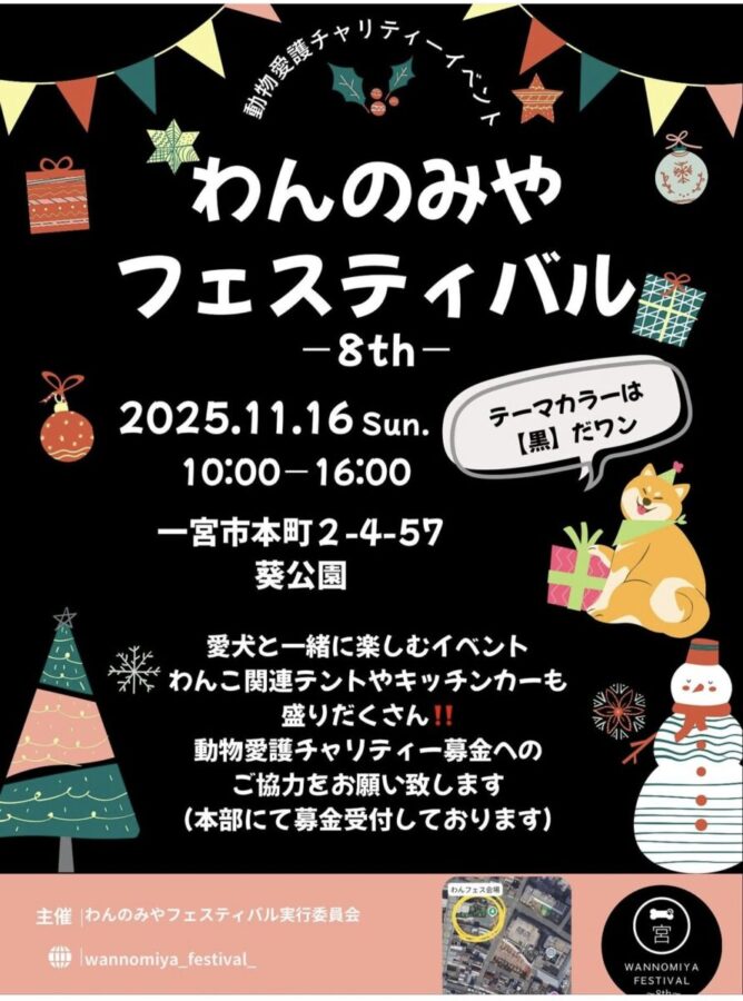 犬好き集まれ!第8回わんのみやフェスティバル 2025年11月15日 明日16日日曜日10時〜 一宮市役所西の 葵公園にて わんのみやフェスティバル 私も、愛犬連れて伺います(イヌ) 楽しみすぎるぅー。 Screenshot Screenshot Screenshot ブログ ツイート シェア はてブ pocket LINE 第二回チアフル浅井 秋祭りに行って参りました。 前へ 一覧へ 次へ おすすめ関連記事 明日は「経済教育委員会」にて 地元の要望を届けます。 2022年03月13日 宮西連区交通見守り隊 募集中 2022年04月12日 ポスター貼りは、きちんと挨拶をして、許可を頂いてから貼らせていただきます。 2022年05月05日 部落解放をめざす愛知研修会 2022年06月15日