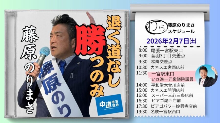 明日最終日は、 いさ進一衆議院議員が一宮市入り 2026年02月06日 #いさ進一衆議院議員 一宮駅東口 #愛知10区は藤原のりまさ #藤原のりまさ 応援弁士に入っていただきます。 ブログ ツイート シェア はてブ pocket LINE 本日夜7時30分より向山公民館にて個人演説会 前へ 一覧へ 次へ おすすめ関連記事 今一番アツい人といえば! 創業100年、老舗料亭菊水4代目 平松千直さん 2022年08月09日 オミクロン株対応ワクチン接種について 一宮市議会議員うやま祥子 2022年09月16日 我が母校 一宮市立北部中学校 ハンドボール部 ㊗️西尾張大会 2022年11月03日 #ドックサロン #一宮市 #一宮市議会議員うやま祥子 2022年12月09日