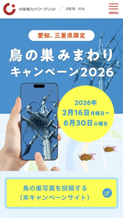 鳥の巣みまわりキャンペーン 中部電力パワーグリッド