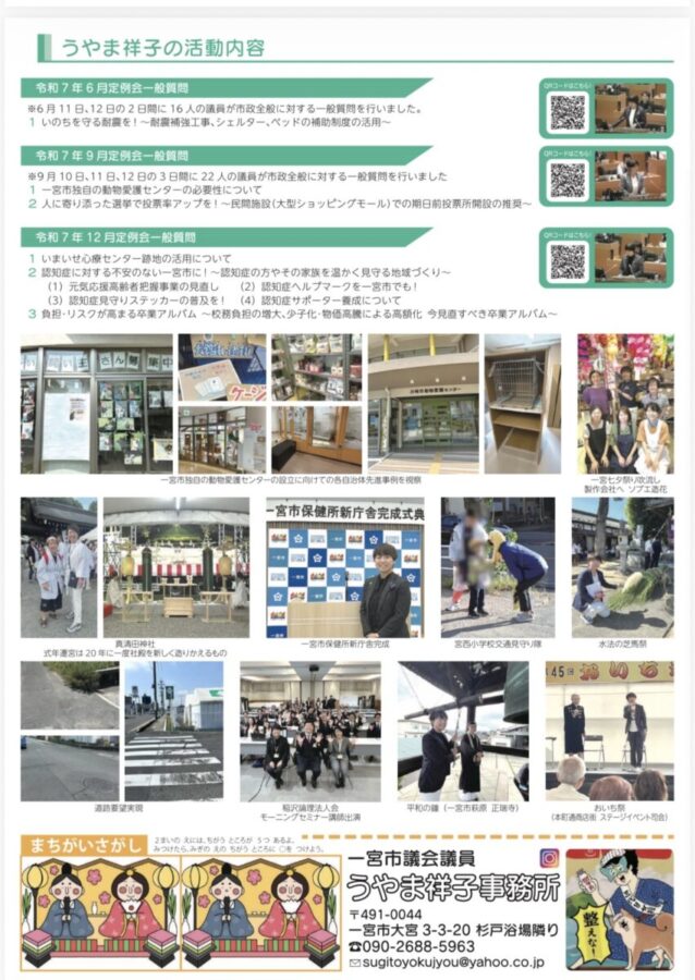 うやま祥子 市政報告 2026年02月28日 Screenshot Screenshot ブログ ツイート シェア はてブ pocket LINE 鳥の巣みまわりキャンペーン 中部電力パワーグリッド 前へ 一覧へ 次へ おすすめ関連記事 名古屋ウィメンズマラソン2021 にボランティア救護班としてランナーのみなさまを応援します! 2021年03月09日 第100回記念あかね会展開催おめでとうございます。 2021年04月25日 かかりつけでなくても接種して頂ける浅井耳鼻咽喉科さんへ 2021年06月17日 市指定文化財「島文楽人形」「人形の虫干し」開催のお知らせ 2021年07月27日