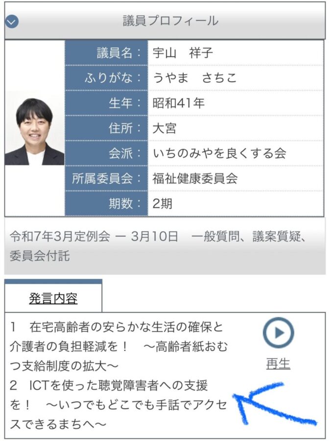 2025年3月に一般質問で要望したICTを使った聴覚障害者への支援 2026年03月25日 要望実現しました! ◾️聴覚等に困難のある方がネットを介して手話通訳オペレーターにつながる「手話リンク」(一宮市役所に問合せなど)始めます■消防・救急の119番通報、これまでは音声・言葉で受け付けてきましたが、4月1日からはビデオ通話もできます、 https://www.city.ichinomiya.aichi.jp/mayor/1011108/1069026/1069036.html ブログ ツイート シェア はてブ pocket LINE 安心安全なまちづくり 前へ 一覧へ 次へ おすすめ関連記事 学校再開と夏休みの短縮について 2020年05月15日 第二回立憲民主党愛知県連大会開催 2020年07月19日 一宮市スケート場は来月オープンです。 2020年09月06日 一宮市のせんいはこんなにも素敵だ! 2020年11月08日